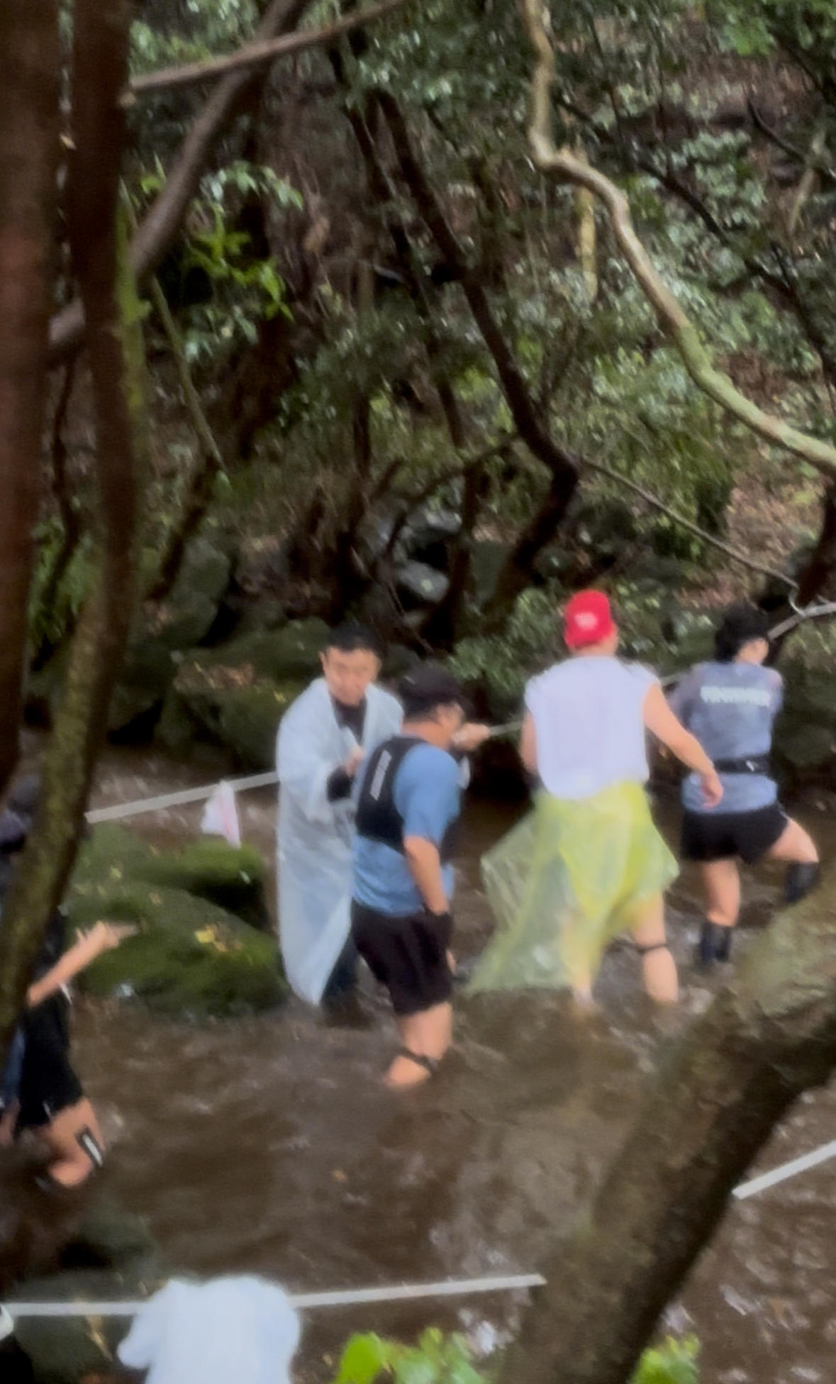 위의 사진은 같이 달린 분이 찍은 영상을 캡쳐한건데 저렇게 남성분들 무릎까지 물이 차는 곳에서는 설치된 줄을 잡고 천천히 건너가야했답니다. 저 물 아래에는 크고 작은 돌들이 있고 물살이 있어서 건너는게 쉽지않아 힘들었는데 한 편으로는 그게 또 너무 신기하고 재미있더라고요.