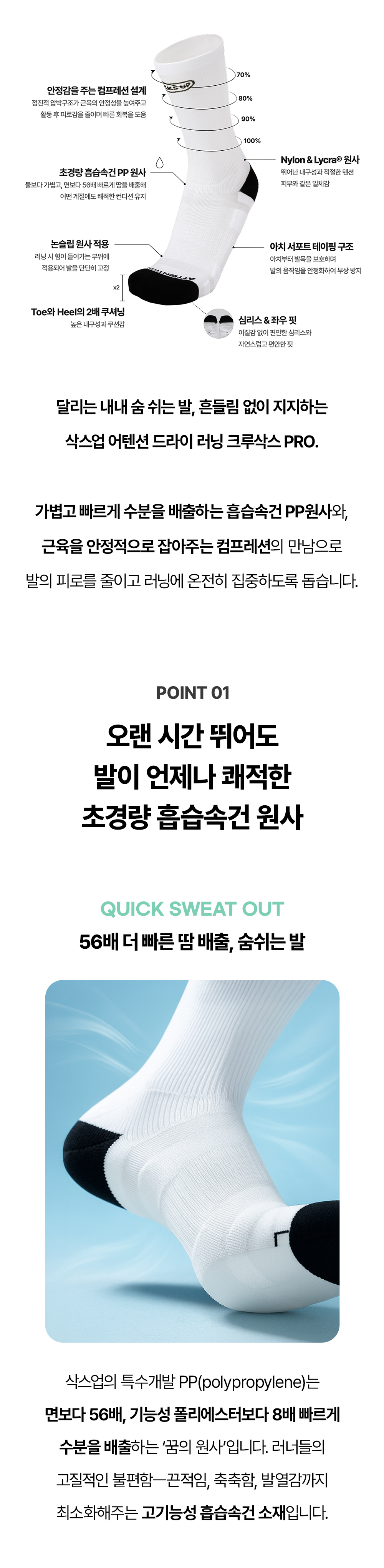 [삭스업] 어텐션 드라이 러닝 크루삭스 PRO